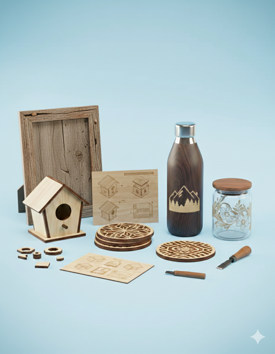 Selbstgemachtes aus Holz und Wolle sowie praktische Dinge aus dem 3D-Drucker und Gravuren – solides Handwerk aus unserer Werkstatt.